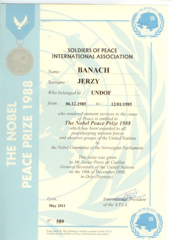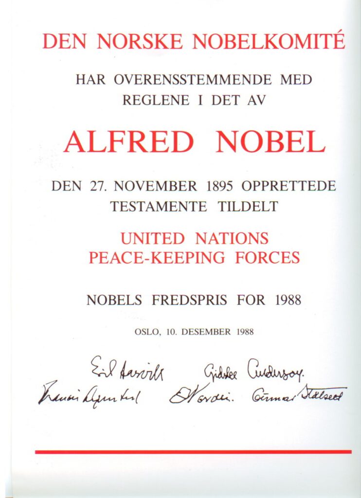 Za działalność w misjach pokojowych ONZ został uhonorowany Medalem „In the Service of Peace – Nobel Prize 1988”, przyznawanym osobom szczególnie zasłużonym dla międzynarodowego bezpieczeństwa i ochrony życia.