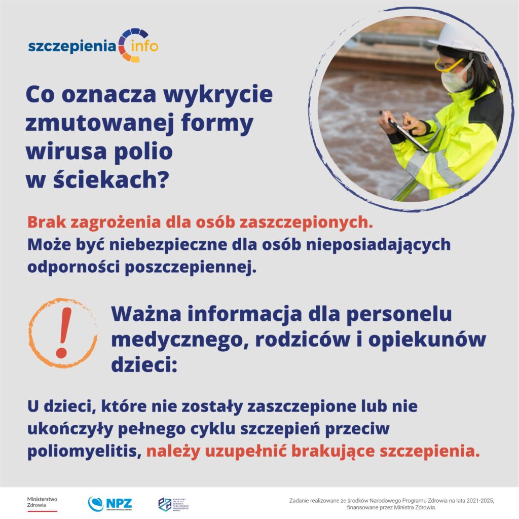 Główny Inspektor Sanitarny (GIS) podkreśla, że wobec braku efektywnych leków na wirusa polio, leczenie ogranicza się tylko do łagodzenia objawów, co sprawia, że kluczową rolę w profilaktyce odgrywają szczepienia.